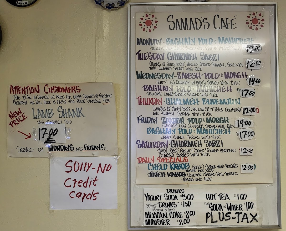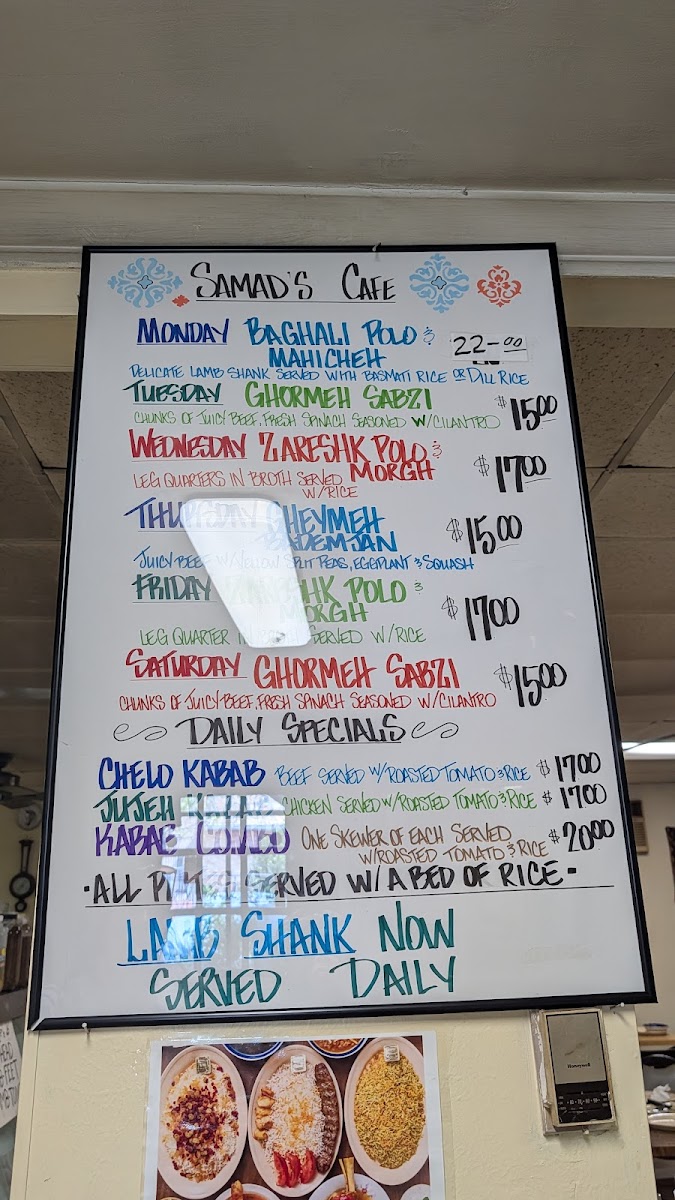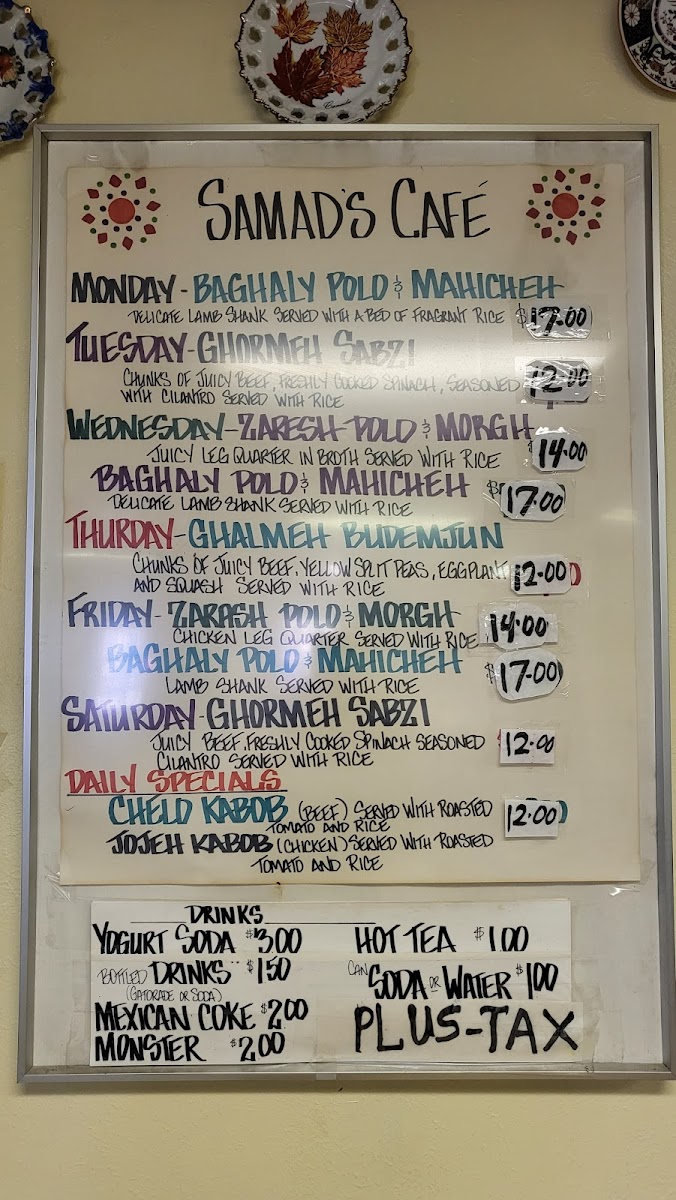 Samad Cafe offers a thoughtfully curated menu that reflects the comforting simplicity of authentic Persian home cooking. The selection leans toward hearty, traditional dishes that pair perfectly with the cafe’s warm, inviting atmosphere—ideal for a relaxed lunch or a casual dinner with friends and family.